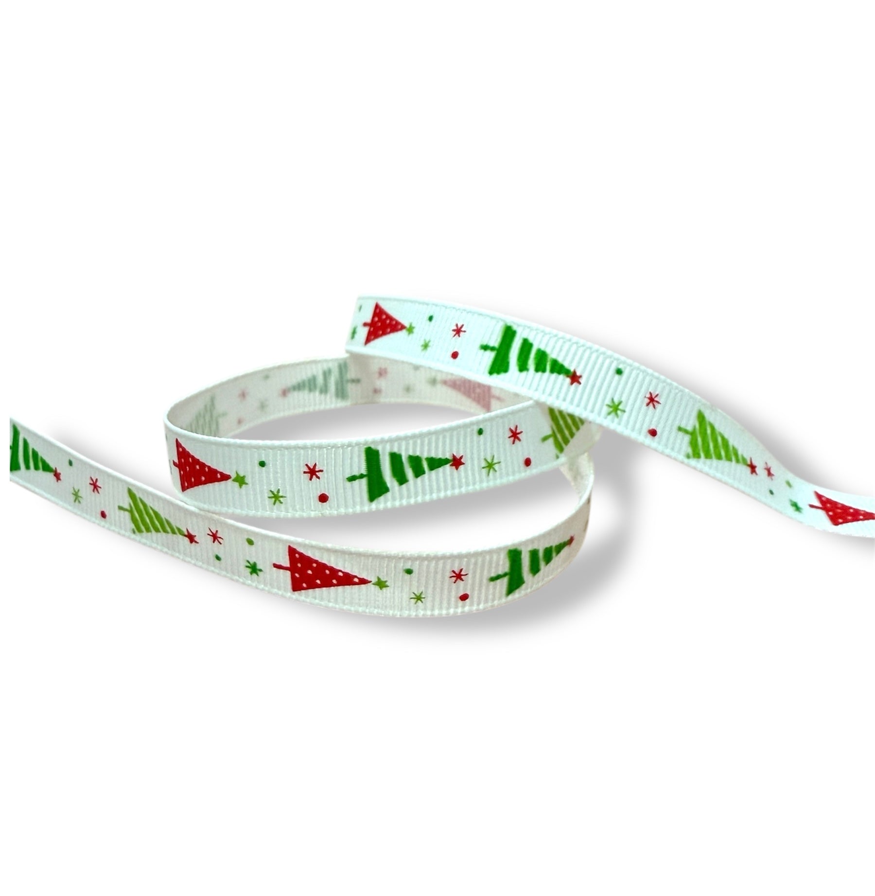 Cinta faya con estampado de árbol navideño. El precio es por metro.