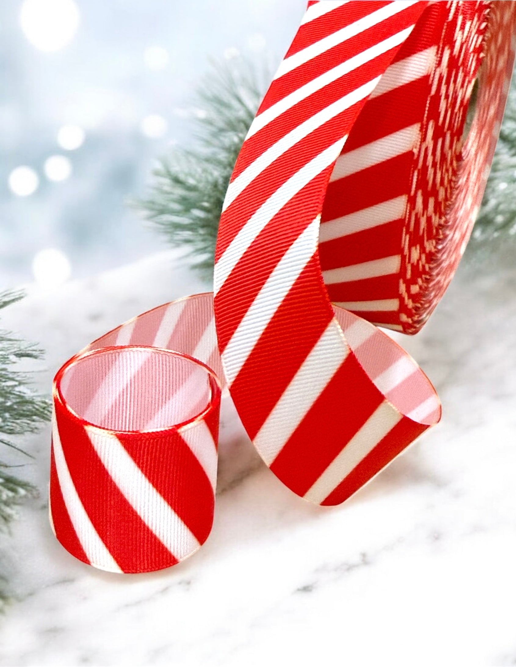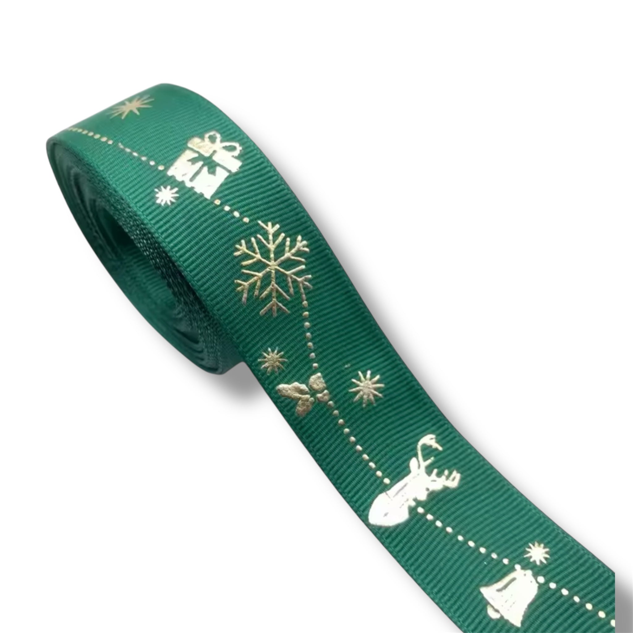 Cinta de 1cm de satín con estampado navideño. El precio es por metro.