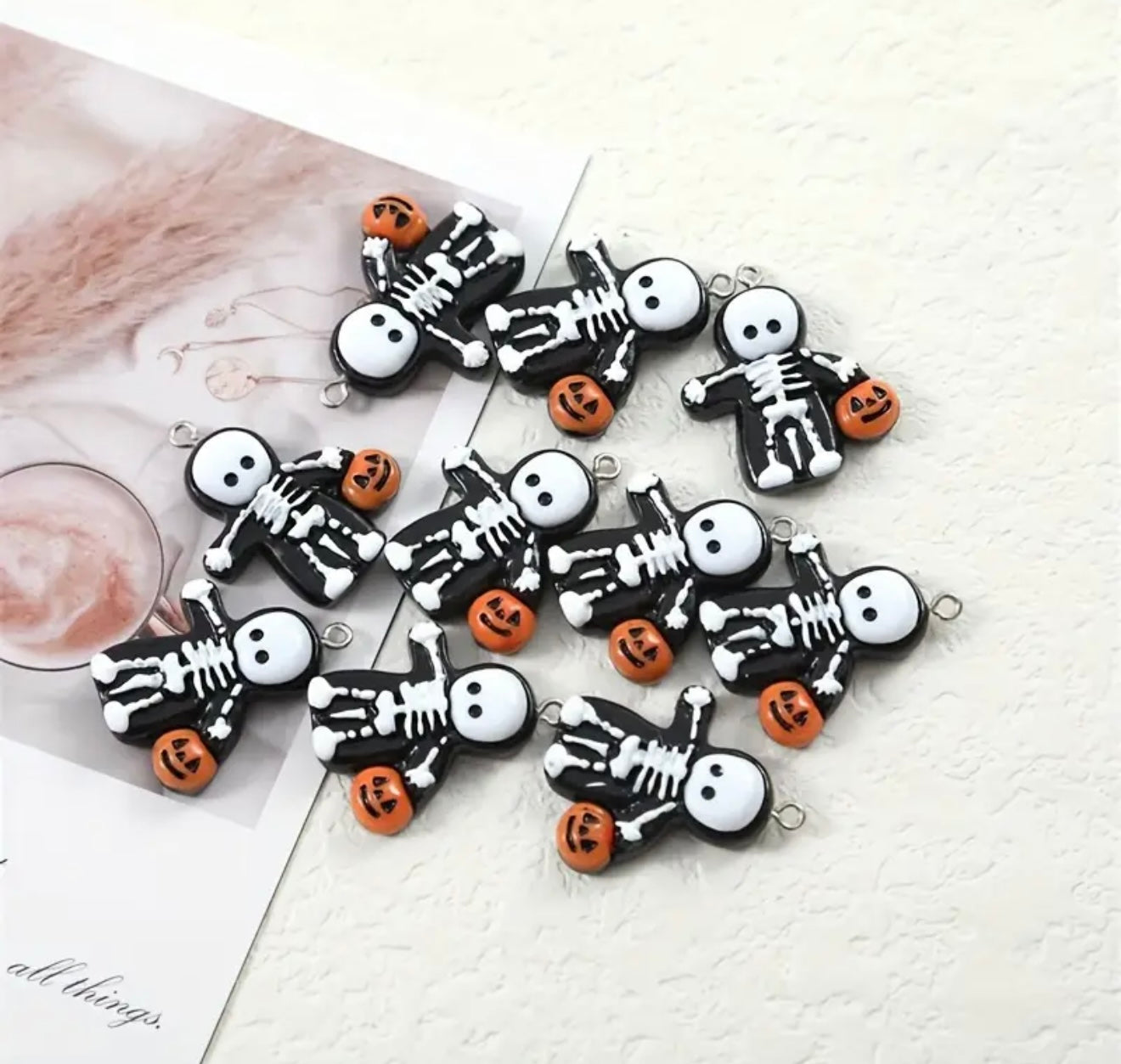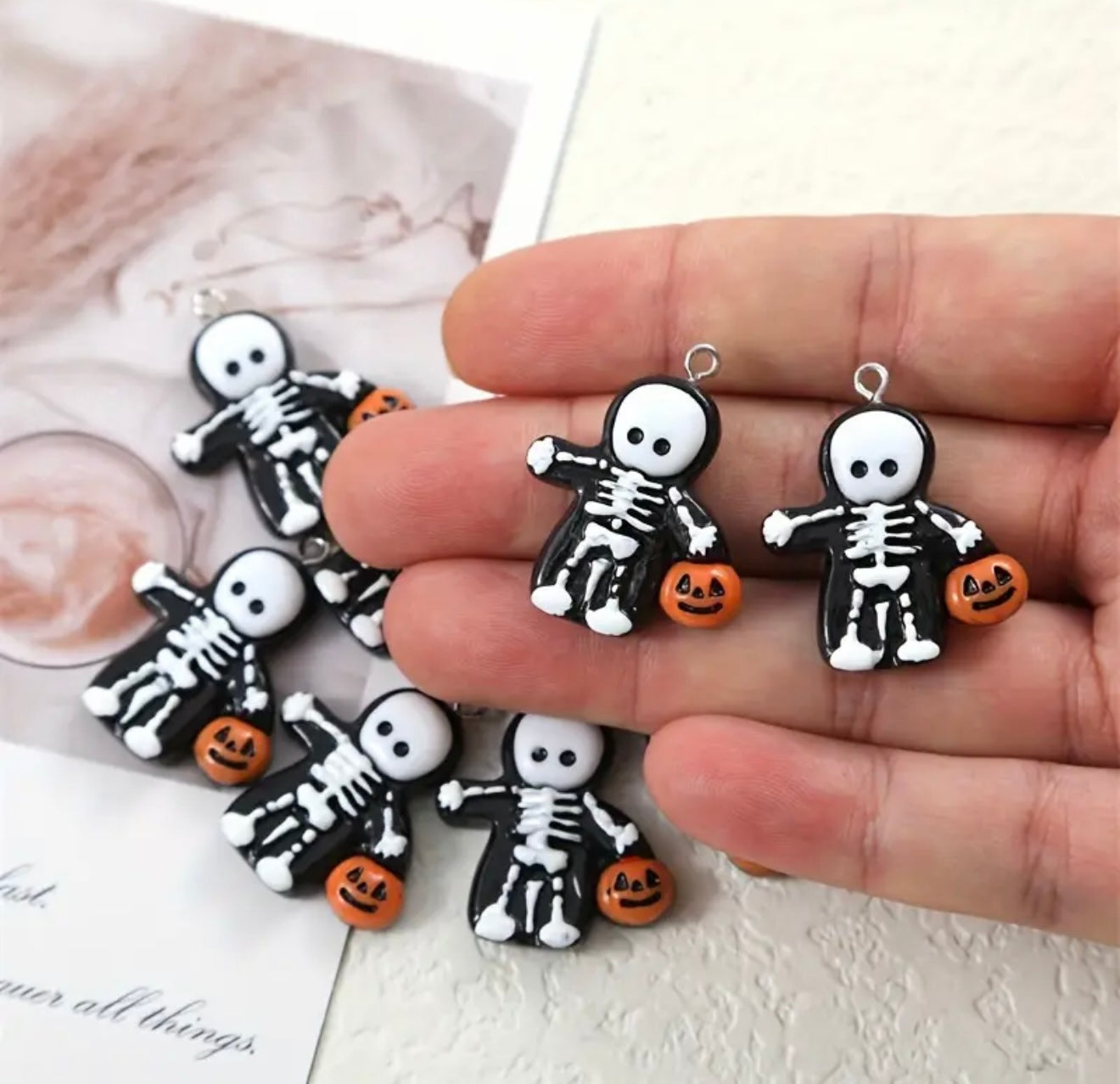 Mini esqueleto con calabaza en resina, mide 3cm. El precio es por unidad. La argolla se puede...