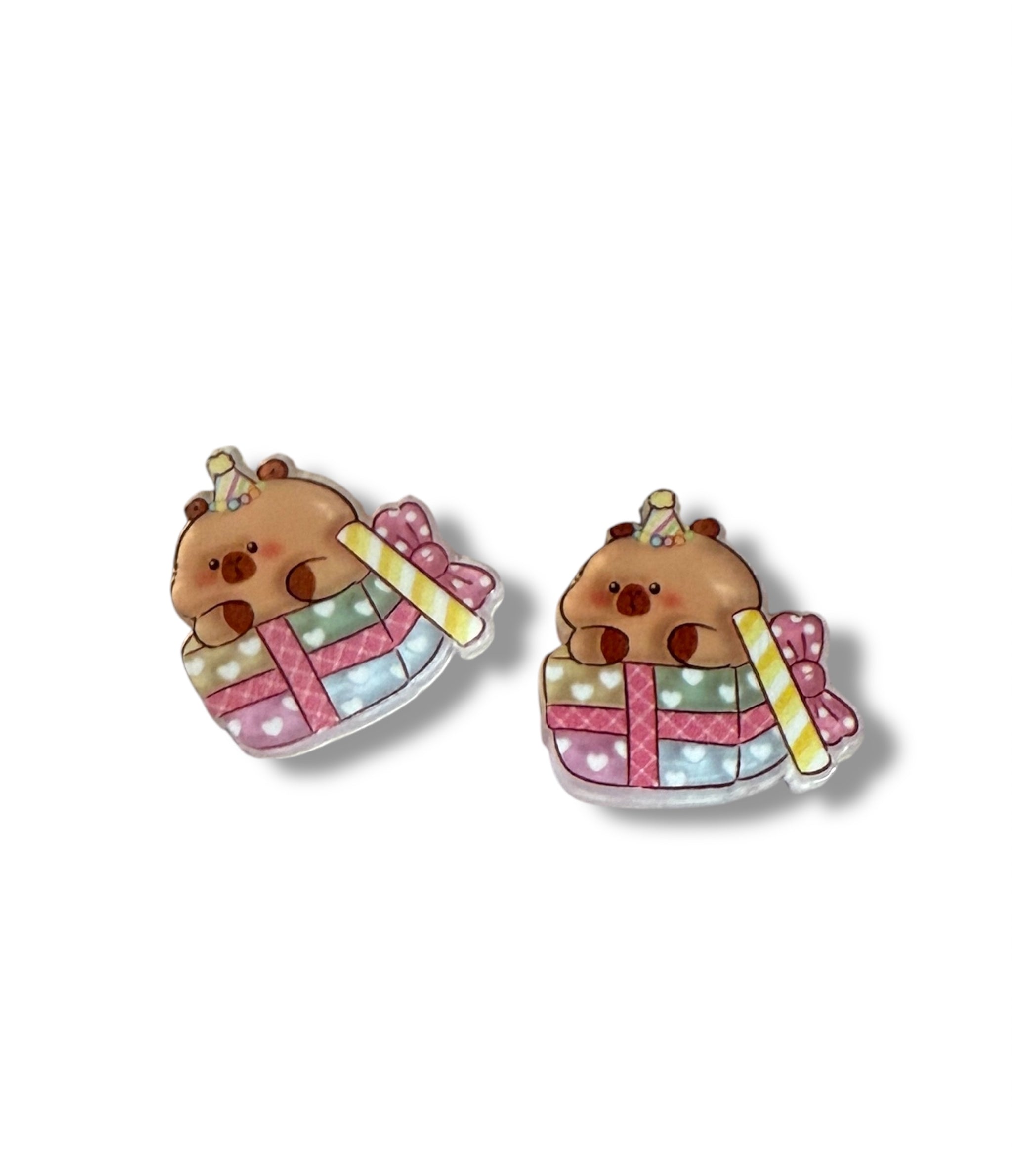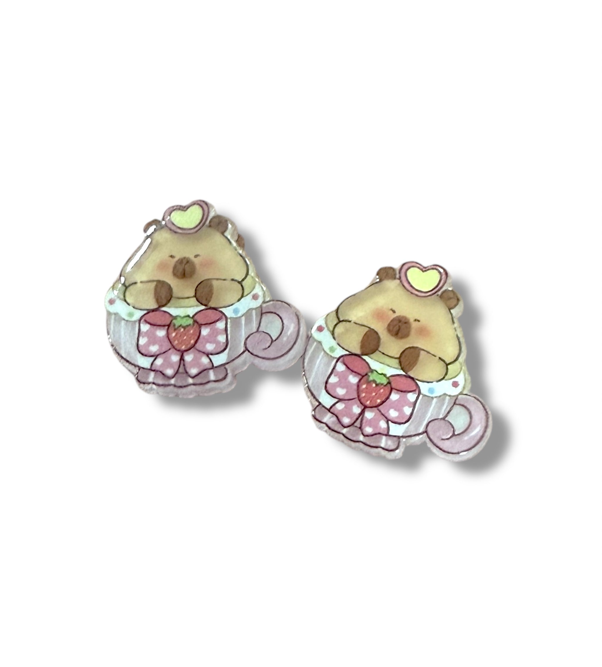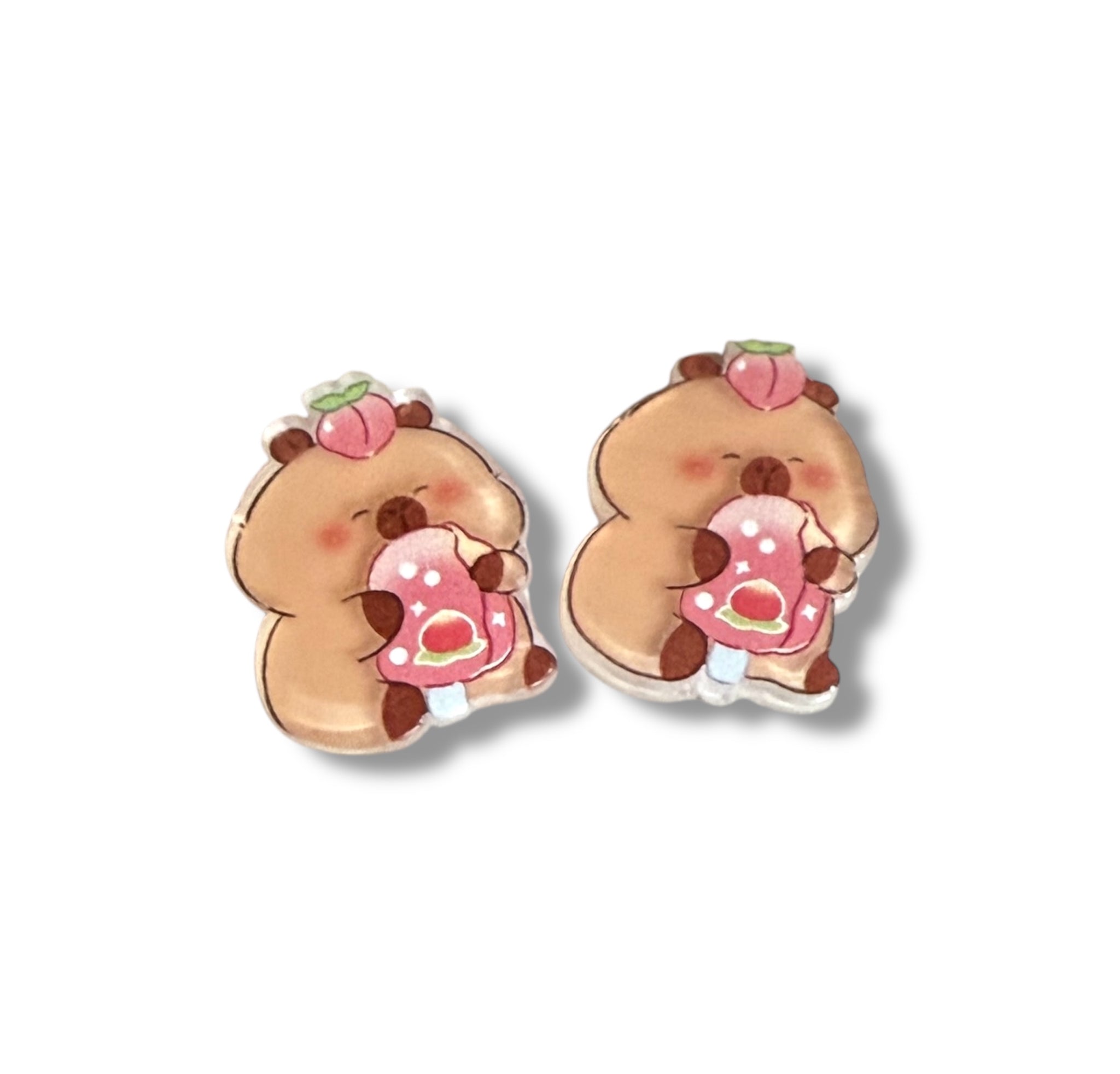 Lindos paliques capibara acrílicos, se venden por par , medidas: 2cm x 2cm